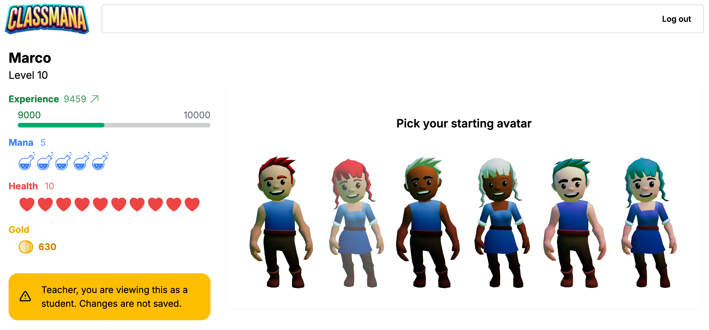 Ve druhé fázi získají vaši studenti přihlášení. Poté se mohou přihlásit do svého účtu a přizpůsobit si svého avatara. Jejich avatary se zobrazí na třídní nástěnce. S každým postupem na vyšší úroveň si studenti mohou vybavit lepší výbavu. Celkem je 35 úrovní, takže můžete udržet jejich zájem po celý školní rok, když budou postupovat o úroveň každý týden.